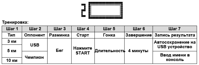 - Помните, что Вы автоматически проиграете гонку, если нажмете кнопку STOP. А вот в случае выигрыша, система автоматически перейдет в режим ЗАВЕРШЕНИЯ ТРЕНИРОВКИ, который будет длиться 4 минуты.