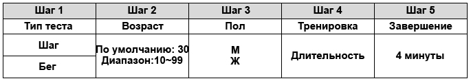 - Кроме того, в целях безопасности, если Ваш пульс достигнет предустановленного максимума, то тест автоматически прекратится.