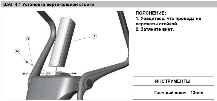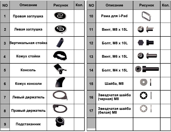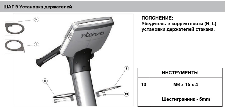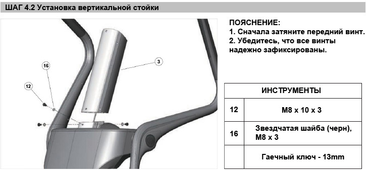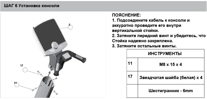 Для начала следует открыть коробку и удалить весь картон вместе с пенопластом. Перед тем, как будете собирать тренажер, проверьте наличие всех необходимых деталей по предоставленному Вам списку. Не забудьте подготовить шестигранник на 6 mm для сборки. 2.1 Сборка 550ETi