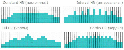 - Разные режимы HRC имеют различное предустановленное целевое значение пульса.