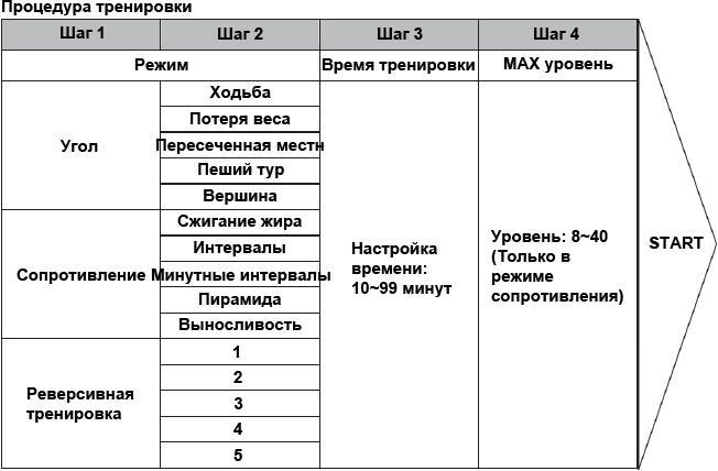 ЗАМЕЧАНИЕ МАКСИМАЛЬНЫЙ УРОВЕНЬ – это максимальное значение каждой колонки в профиле тренировки. Вводить МАКСИМАЛЬНЫЙ УРОВЕНЬ СОПРОТИВЛЕНИЯ следует в соответствии с Вашими физическими способностями. Так же Вы можете изменить уровень сопротивления и угол наклона тренажера и во время тренировки.