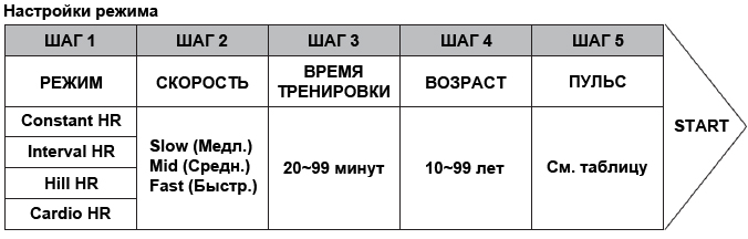 - Выбирая опцию СКОРОСТЬ ТРЕНИРОВКИ, Вы тем самым указываете, с какой скоростью желаете достичь требуемого значения пульса.