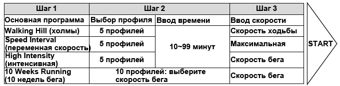 ЗАМЕЧАНИЕ МАКСИМАЛЬНАЯ СКОРОСТЬ – это максимальное значение каждой колонки в профиле тренировки. Вам следует ввести тот показатель, который будет соответствовать Вашим физическим способностям. Кроме того, у Вас имеется возможность самостоятельно настроить скорость и угол наклона во время проведения тренировки.