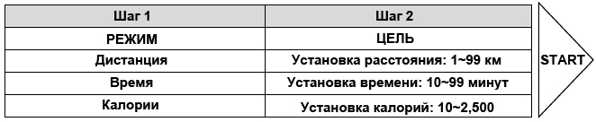 - Следующим шагом является введение целевое значения. Для этого воспользуйтесь поворотом джойстика. Нажав ENTER, Вы подтвердите свой выбор. Максимально допустимые значения параметров тренировки указаны в таблице выше.