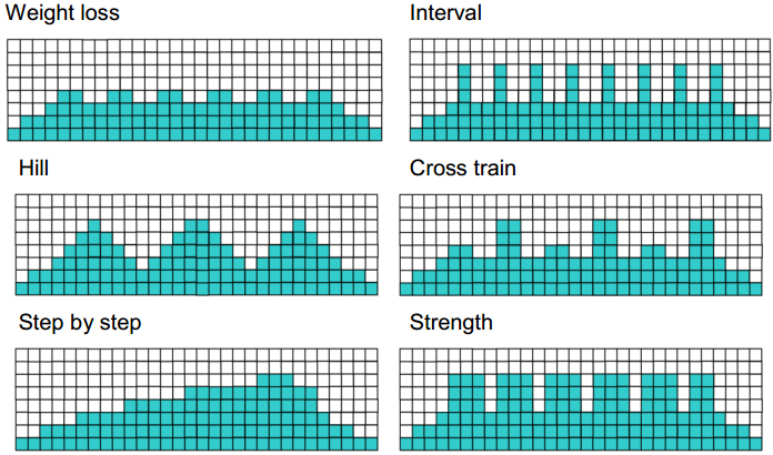 Следуйте сообщениям на экране для работы в этом режиме на 550UBe или 550RBe. 5.2 Предустановленный режим Велотренажеры Intenza 550 имеют шесть предустановленных режимов. Каждый режим позволяет улучшать определенную аэробную характеристику постановкой разных задач. На светодиодной матрице при настройке отображается диаграмма уровней нагрузки во время тренировок. При заданном времени тренировки в 30 минут каждый столбец отображает 1 минуту. На диаграмме текущая минута отображается миганием. Нужно просто выбрать программу тренировки и настроить джойстиком максимальный уровень нагрузки. Консоль велотренажеров Intenza сохраняет данные о тренировке каждые 5 секунд. Для этого перед началом тренировки необходимо вставить USB-носитель в соответствующий порт. По завершению тренировки файл записывается на USB-носитель под именем дня тренировки. Предустановленные режимы тренировок