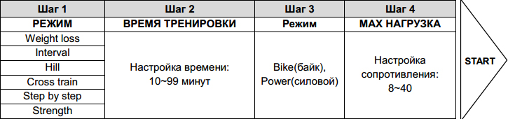 - Перед запуском программы тренажер включает отсчет на 3 секунды.