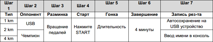 - Результат гонки отображается на экране. Если Вы победите в гонке, тренажер запишет Ваше имя вместо предыдущего чемпиона. Результат можно сохранить на USB-носителе.