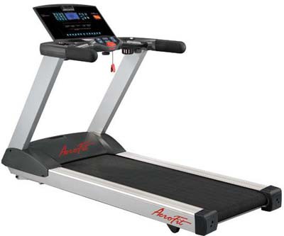 Вся информация о пройденной дистанции, уровне подъема бегового полотна, скорости, темпе тренировки, потраченном и оставшемся времени, сожженных калориях отображается на дисплее беговой дорожки 8700ТM фирмы AeroFit.