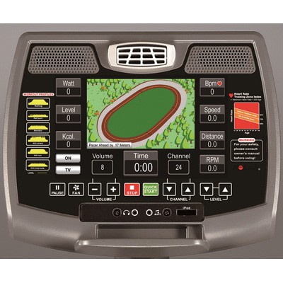 Консоль тренажера полностью совместима с iPod, что позволяет осуществлять воспроизведение музыки и просмотр видео прямо на дисплее тренажера.