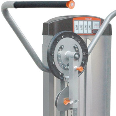 Магнитный селектор обеспечивает удобный выбор нагрузки. К стеку он крепится гибким тросиком. Даже сидя можно с легкостью дотянуться до весового стека. Вес указан в килограммах и фунтах. Бесшумная работа за счет тефлоновых втулок траверсы грузовых стеков.