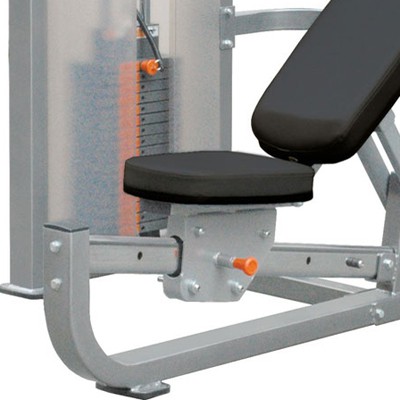 Положение сидения и спинки регулируется полуавтоматическими фиксаторами. Они легкие и удобные в использовании, благодаря им сидения и спинки прочно удерживаются в нужном положении. Даже новички с легкостью смогут настроить тренажер при помощи ярких оранжевых ярлыков регулировок.