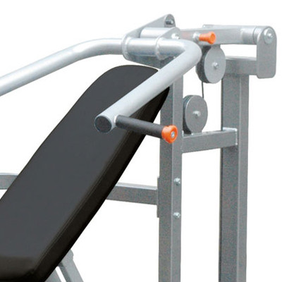 Магнитный селектор обеспечивает удобный выбор нагрузки. К стеку он крепится гибким тросиком. Даже сидя можно с легкостью дотянуться до весового стека. Вес указан в килограммах и фунтах. Бесшумная работа за счет тефлоновых втулок траверсы грузовых стеков.