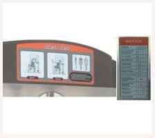 Задействованная группа мышц и правильное положение тела во время выполнения упражнений демонстрируются наглядными иллюстрациями с пошаговыми инструкциями. Также на тренажере расположены таблички, отображающие рекомендации по техническому обслуживанию тренажера.