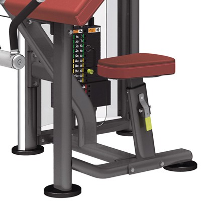 При помощи магнитного селектора удобно выбирать нагрузку. Даже сидя на тренажере можно просто дотянуться до весового стека. Развесовка в фунтах и килограммах.