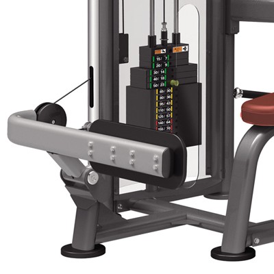 При помощи магнитного селектора удобно выбирать нагрузку. Даже сидя на тренажере можно просто дотянуться до весового стека. Развесовка в фунтах и килограммах.