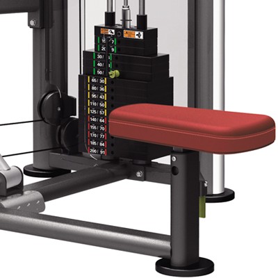 При помощи магнитного селектора удобно выбирать нагрузку. Даже сидя на тренажере можно просто дотянуться до весового стека. Развесовка в фунтах и килограммах.