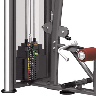 При помощи магнитного селектора удобно выбирать нагрузку. Даже сидя на тренажере можно просто дотянуться до весового стека. Развесовка в фунтах и килограммах.