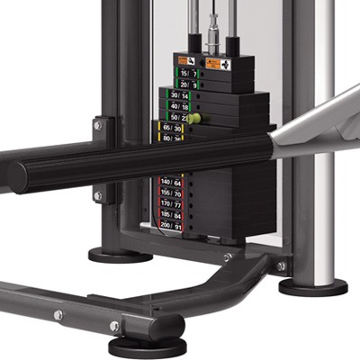 При помощи магнитного селектора удобно выбирать нагрузку. Даже сидя на тренажере можно просто дотянуться до весового стека. Развесовка в фунтах и килограммах.
