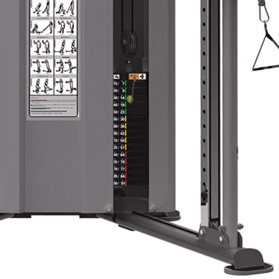 При помощи магнитного селектора удобно выбирать нагрузку. Даже в положении сидя просто дотянуться до весового стека. Развесовка в фунтах и килограммах.