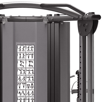 Иллюстрации универсального тренажера IT9330 фирмы AeroFit содержат наглядные пошаговые инструкции, которые демонстрируют правильное положение тела во время выполнения упражнения и задействованные в нем мышцы. Рекомендации по техническому обслуживанию тренажеров представлены на информационных табличках.