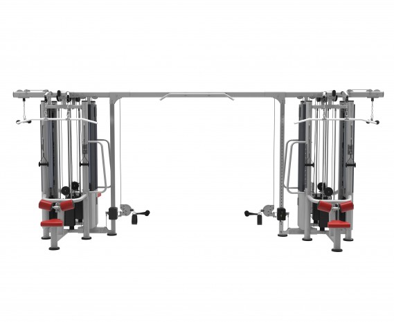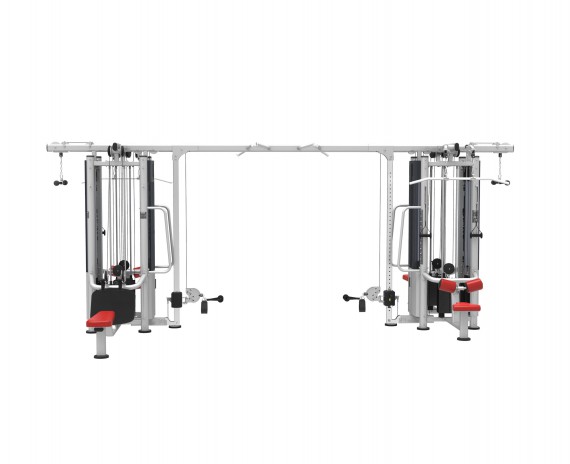 8-ми стековая мультистанция профессионального класса предназначена для изолированной проработки необходимых групп мышц, в том числе мышц верхнего плечевого пояса, рук, спины и груди, а также ягодичных мышц и приводящих/отводящих мышц бедра с помощью комплекса различных силовых и тяговых упражнений.