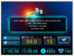 По окончании занятия на дисплей осуществляется вывод результатов и статистических данных тренировки, причем результаты можно немедленно опубликовать на своих страницах в социальных сетях Twitter или Facebook.