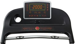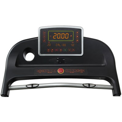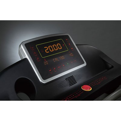 Консоль этого тренажера выполнена в современном стильном дизайне и оснащена всем необходимым для эффективных и комфортных тренировок. Тут есть удобное углубление, в которое можно положить MP3-плеер или мобильный телефон во время занятия, и отверстие для бутылки. В нижней части консоли расположена дополнительная панель управления, оснащенная кнопками быстрого доступа: изменение угла наклона бегового полотна и скорости, ключ безопасности и кнопка экстренной остановки. А наличие встроенной аудиосистемы позволяет слушать музыку, записанную на флеш-карту.