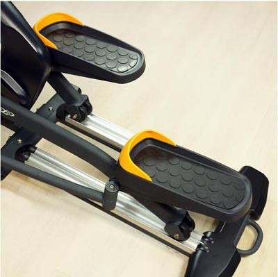 Уменьшение нагрузки, приходящейся на поясничный отдел позвоночника, и максимально комфортное положение ступней во время занятий обеспечиваются большими ортопедическими педалями, оснащенными мягкими нескользящими вкладками.