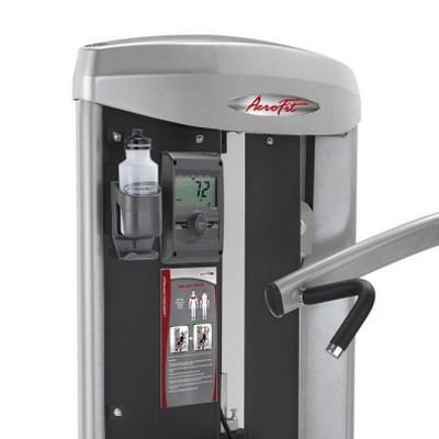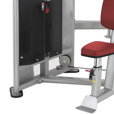 Профессиональный силовой тренажер способствует тренировке дельтовидных, трапецевидных мышц и трицепса в положении сидя.