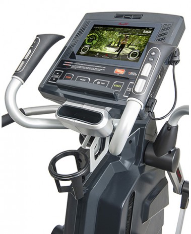 Немаловажным достоинством эллиптического тренажера можно отметить светодиодный матричный дисплей. Сверхчувствительный экран мгновенно реагирует на прикосновения, позволяя легко переключаться между мультимедийным центром и выбранной фитнес-программой.