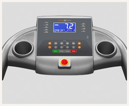 Консоль тренажера имеет голубой дисплей диагональю 12,5 см. Экран одновременно отображает все основные показатели тренировки: дистанцию, время, скорость, угол наклона, калории и пульс. Программный пакет включает девять предустановленных программ, которые направлены на укрепление сердечно-сосудистой системы, тренировку выносливости и скорости, а также похудение. Кроме предустановленных программ можно использовать ручной режим для регулировки параметров тренировки.