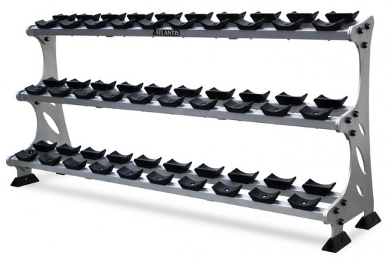 Стойка S-189 от компании Atlantis оборудована тремя полками, каждая из них рассчитана на 5 пар гантелей. Компактные габариты позволяют установить эту конструкцию в любом удобном месте.