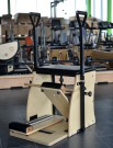 Комбинированный стул СС6004 компании Balanced Body снабжен снимающейся спинкой и применим для тренировок с Трапецией, также подойдет для занятий Комбинацией Реформер-Трапеция. Благодаря конструкции мягких ступенек их просто объединять в платформу. Дополнительному удобству служат шумопоглощающая подушка, расположенная под ступенями с антискользящим покрытием, и система регулировки комфортных рукоятей по высоте. Сопротивление пружин можно варьировать путем смены крепежных позиций.