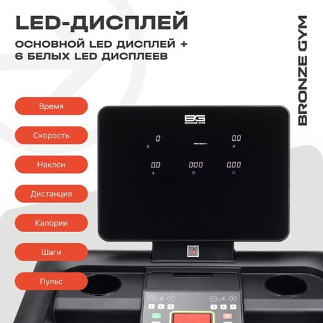 выбор нужной скорости и угла наклона беговой поверхности нажатием клавиш быстрого доступа на консоли, русифицированные надписи на консоли и клавиши для удобства выбора программ и управления тренировкой.