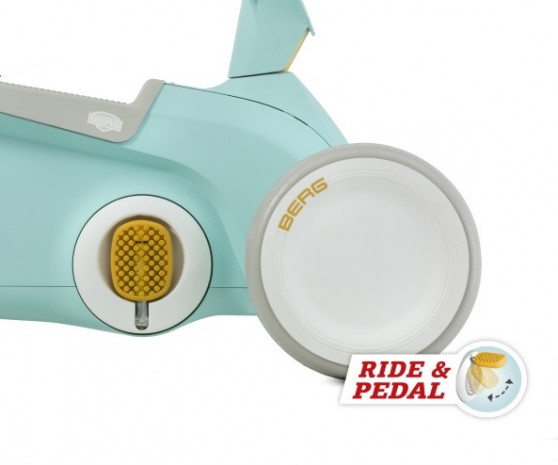 Веломобиль GO² SparX Mint бренда Berg, рассчитанный на детей от 10 месяцев до 2,5 лет, является самым маленьким веломобилем в линейке товаров этого производителя. Если Вы считаете, что Вашему ребенку надо научиться крутить педали или кататься как на беговеле, то эта модель станет лучшим выбором. BERG GO² SparX – это два-в-одном: веломобиль и беговел. За счет складного механизма педалей можно легко перейти от одного шага к другому.