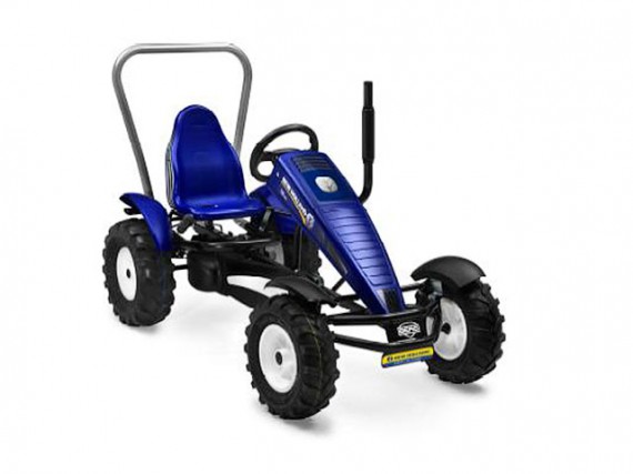 Веломобиль имеет вид настоящего брендового трактора Berg Traxx. Модель снабжена усиленной задней осью, передним спойлером и широкими шинами. Вы можете управлять веломобилем на одной из трёх скоростей или включить задний ход. Модель New Holland компании Berg имеет улучшенное рулевое управление. А ещё у вас есть возможность украсить веломобиль собственным логотипом или использовать личный номерной знак.