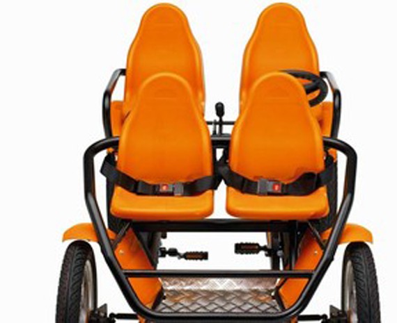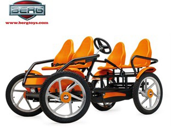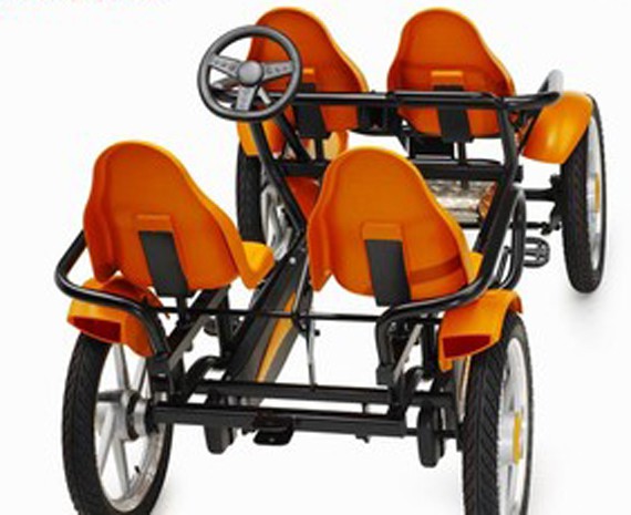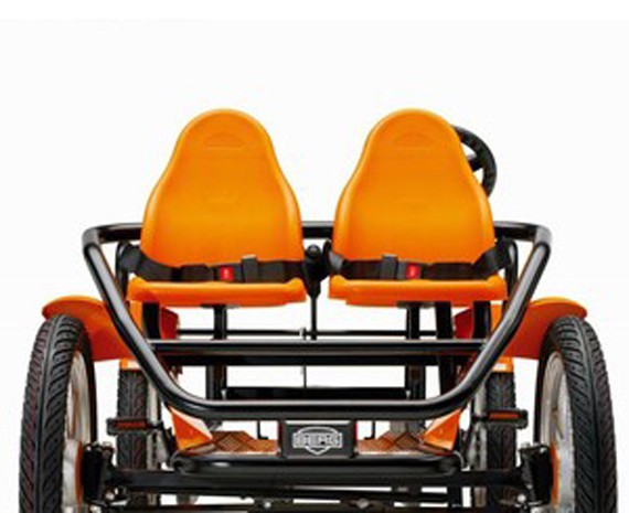 Изделие GranTour F от Berg относится к категории семейного транспорта, так как на нем одновременно может разместиться 4 человека. Также его можно использовать в коммерческих целях для катания по центральным улицам, парковым зонам или для экскурсионных поездок на небольшие расстояния. В последнее время веломобили приобрели большую популярность благодаря их безопасности и экологичности.