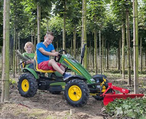 John Deer BFR от Berg предназначен для поездок по труднопроходимым участкам. Минимальный возрастной порог пользователей – 5 лет. Веломобиль оснащен приводом BFR, дающим возможность совершать движение по направлению вперед – назад за счет вращения педалей и останавливать транспорт нажатием на педаль тормоза. Благодаря шинам с протектором, как у внедорожника, Berg John Deer BFR легко преодолеет ухабы и выбоины. Опционально к изделию можно приобрести интересные и полезные аксессуары.