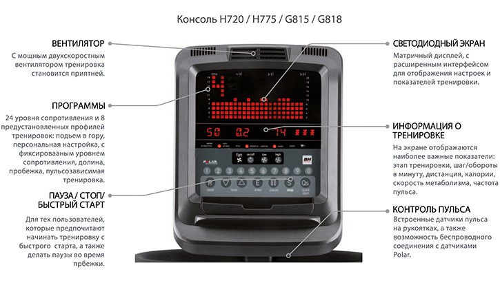 Консоль с матричным экраном и множеством полезных интерактивных функций помогает следить за ходом тренировки и устанавливать все необходимые настройки.