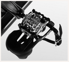 Тренажер оснащен педалями смешанного типа, в которых предусмотрено два типа креплений – стандартные ремешки и специальные зажимы для велосипедной обуви.
