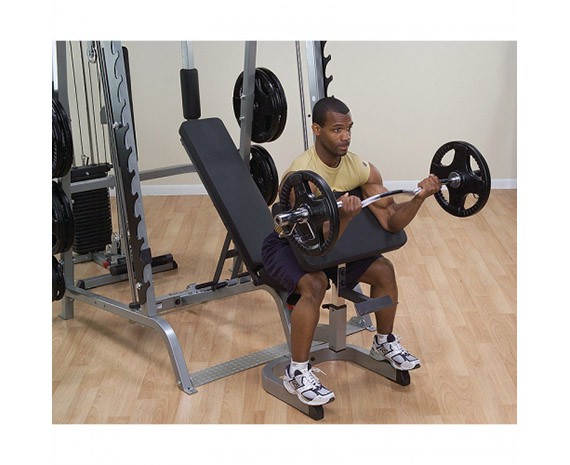 Великолепный спортивный тренажер GS348QP4 отBody Solid предназначен для интенсивной эксплуатации на протяжении длительного срока службы. Данная мультифункциональная модель соответствует строгим стандартам безопасности и надежности.Обратный угол наклона гарантирует естественные траектории движений в процессе занятий. Главным отличительными чертами оборудования являются 20 точек фиксации и 15-градусный поворот грифа. В процессе произвольных тренировок длинные страховочные брусья отвечают за безопасность. Помимо этого имеется держатель весов ("гребенка") с 14 положениями. Линейные подшипники отвечают за необходимую плавность хода непосредственно по направляющим. Дополнительным достоинством можно отметить специальные встроенные держатели олимпийских весов.