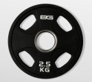 В обрезиненном олимпийском диске BG-PA-PL-P025 бренда Bronze Gym предусмотрены специальные отверстия для занятия с блином без штанги.