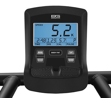 На дисплее в постоянном режиме отображаются основные тренировочные параметры, такие как пройденная дистанция, время, скорость, пульс, истраченные калории, Recovery, жироанализатор Body Fat.
