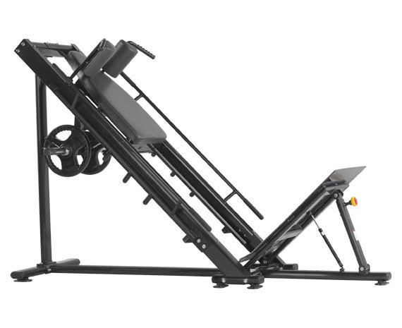 Профессиональная гак-машина предназначена для выполнение упражнений на развитие мышц ног. Ее можно вполне использовать в коммерческих целях.