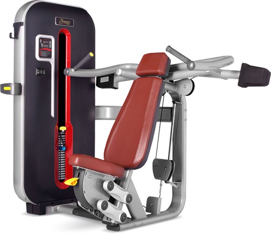 Грузоблочный профессиональный тренажер MT-003 компании Bronze Gym принадлежит к линейке премиальных продуктов компании. Во время выполнения вертикального жима задействуются дельтовидные, большие грудные, клювовидно-плечевые и локтевые мышцы, а также трицепсы.