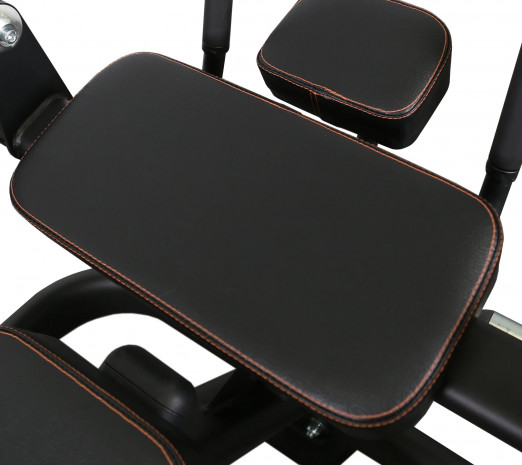 Широкая скамья с большой опорной спинкой обеспечивает поддержку спины и правильное положение тела во время тренировки. Длинные поручни и двойные валики позволяют выбрать удобное положение рук и ног для правильного выполнения упражнений.