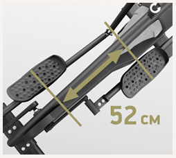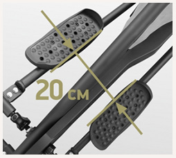 Уникальный эллиптический тренажер Pro Glider 2 бренда Bronze Gym имеет тот же принцип нагружения, что и спин-байки. Ременной привод с колодочным принципом нагружения лежит основе технологии. Отличная ровная динамика и инерционность кручения создаются маховиком, который имеет физический вес 22 кг. Расстояние между педалями 20 см, длина шага 52 см. Все сочленения комплектуются подшипниками. Эллипсоид оснащен тренировочным компьютером.