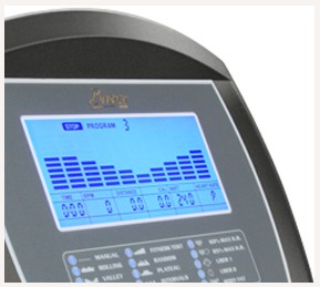 Удобство посадочного положения во время тренировки обеспечивается за счет эргономичного контурного сидения, которое регулируется как по горизонтали, так и по диагонали. Тридцать семь уровней системы нагружения регулируются в широком диапазоне мощности 40-400 Ватт. Управление тренажером осуществляется при помощи многофункциональной LCD консоли с голубой подсветкой, которая обеспечивает профиль тренировки. Предустановленные программы включают десять тренировочных профилей, по два пульсозависимых и пользовательских режимов, а также жироанализатор Body Fat. Благодаря наличию эргономической функции обеспечена возможность фиксирования необходимого уровня нагрузки, который останется постоянным независимо от скорости вращения педалей. Функция Recovery по окончании тренировки позволит оценить способность сердечнососудистой системы войти в обычный режим.