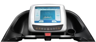 Эта модель беговой дорожки оснащена современной консолью с 15-ти дюймовым сенсорным LCD дисплеем. На большом экране не только отображается вся необходимая информация о тренировке. Он также служит и для доступа к широкому набору мультимедийных возможностей. Дисплей обеспечивает просмотр различных видеофайлов и изображений, обеспечивает доступ к аудиофайлам с носителей, которые можно прослушивать как через наушники, так и через динамики. Носителями могут служить USB-флешка или проигрыватель, подключаемый через разъем RCA, а в консоль встроена современная мультимедийная плата, в возможности которой входит поддержка всех основных существующих на сегодняшний день расширений. При подключении к консоли стандартной телевизионной антенны можно смотреть ТВ через эфирные каналы. Кроме того, мультиязычная консоль позволяет выбрать подходящий язык меня, в том числе и русский.