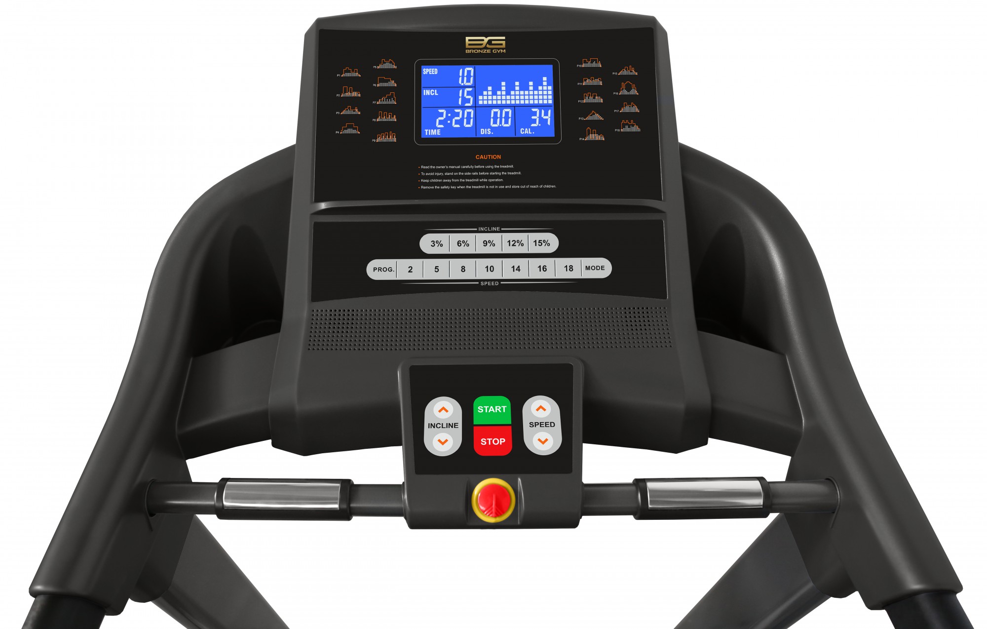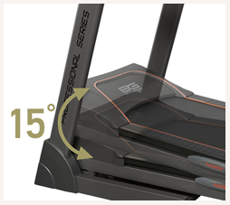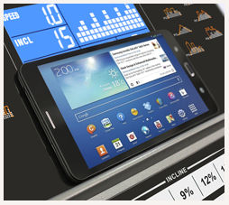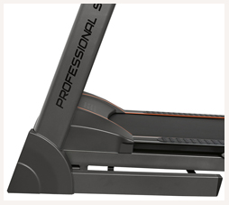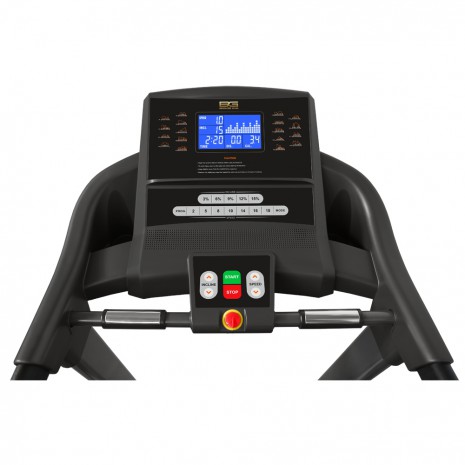 Консоль характеризуется 7-дюймовым экраном(17,8 см), в котором показаны все программные профили . Программы содержат 22 режима тренировок, диапазон которых достаточно широк – от развития силы и выносливости до уменьшения массы тела и улучшения состояния сердечно – сосудистой системы. Кроме всех доступных программ, пользователь сможет создать свой персональный режим тренировок и задать настройки под параметры своего организма и физического состояния. Доступно три пользовательских режима. Для удобства использования, спереди консоли имеются подставки для смартфона или планшета. Гидравлическая система складывания, обеспечивает легкое складывание дорожки, а при раскладывании, плавное опускание полотна на последнем этапе, обеспечит безопасность и простоту управления. Для передвижения дорожки, в нее встроены 4 ролика. Благодаря этому, не смотря на большой вес дорожки, она легко передвигается, при этом, ее не нужно наклонять.